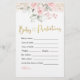 Blush Pink Floral Baby Shower Baby Predictions Game