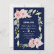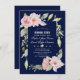 Blush Pink Floral Bloom Navy Blue Rehearsal Dinner Invitation