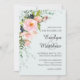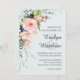 Blush Pink Floral Botanical Light Blue Wedding Invitation