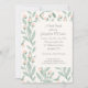 Delicate pastel blush pink flower buds and sage green leaves frame this elegant bridal shower invitation.