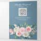 Blush Pink Floral Dusty Blue QR Code Wedding Tri-Fold Invitation