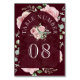 Blush Pink Floral Eucalyptus Burgundy Wedding Table Number