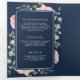 Blush Pink Floral Eucalyptus Navy Blue Wedding Tri-Fold Invitation