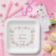 Blush Pink Floral Frame Baptism Paper Plate