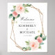 A floral design with a modern geometric frame and pink blush watercolor flowers. The text an colours on this sign poster can be edited.