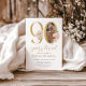 Elegant 90th Birthday Invitation with Photo | Floral & Gold Accents