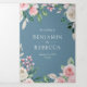 Blush Pink Floral QR Code Dusty Blue Wedding Tri-Fold Invitation