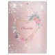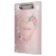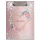 A blush pink background. Faux silver glitter as decoration. A golden heart decorated with pink flowers. Personalize and add a name. The name is written a modern hand lettered script.