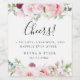 Elegant blush pink floral and green foliage bouquet borders, personalized bottle label. Labels feature multiple template text lines for message, names and date. Background colour, shown in silver grey, can be customized.