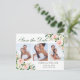 Stylish and whimsical vertical card to thank your guests for being a part of your wedding day. This customizable thank you postcard features white modern calligraphy overlay. This design is also available in other cards.