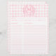 Blush Pink Gingham Floral Crest Monogram Recipe Sheet