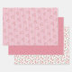 This delightful set of three wrapping paper sheets features whimsical candy canes arranged in heart shapes, adding a touch of sweetness to your gift-giving. The set comes in a trio of charming colours: classic white, festive green, and a soft light pink. The design showcases a lovely pattern of red and white candy canes on a blush pink backdrop, offering a simple yet adorable twist to your holiday presents. These sheets are perfect for wrapping Christmas gifts and bringing joy to the holiday season with their merry and bright candy cane theme.