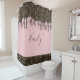Blush Pink Glitter Girly Sparkles Personalized Name Shower Curtain. Blush pink board with pink, white and brown simulated glitter drips at top with matching broad solid border at bottom. Customized monogrammed name in matching chocolate modern hand lettering script typography. Great gift for your trendy glam girl. Don't miss on adding the shower liner to your cart! Step by Step Inspiration Series available exclusively on Zazzle at zazzle.com/store/KrisHarty, designed by international designer, Kris Harty. © 2022 Kris Harty Step By Step Inspirational Designs
