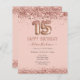 Girly glitter, millennial pink background, with fancy script name typography. Faux rose gold 15 balloon text. Pink Roses and butterfly top border. Great for quince celebrations.