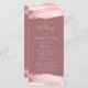 This elegant, modern wedding program features blush pink watercolor agate top and bottom borders trimmed with gold faux glitter. The text appears in elegant blush handwriting and copperplate fonts on a dusty rose background.