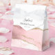 This elegant modern favour box features a blush pink watercolor agate design trimmed with gold faux glitter. The words "First Holy Communion" appear in charcoal grey handwriting script on a white background. Personalize it with your child's name, along with the date below. Ideal for a girl's First Communion.
