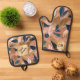 Blush Pink Gold Boho Popular Leaves Collection Oven Mitt & Pot Holder Set