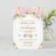 Feminine pink & gold wedding invitation featuring pink & blush watercolor flowers and gold confetti sprinkles