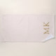 Blush Pink Gold Monogram Beach Towel. Beautiful design featuring rich antique honey gold colored double initial monogram text on pale blush pink. Personalize with your own text. Would make an excellent gift for birthdays, holidays, graduations, promotions, any special occasion, or everyday. We invite you to visit our store, Simon & Grace for matching products and more.