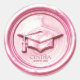 "This antique pink graduation sticker features a classic embossed effect with a vintage, aged metal texture. The elegant design includes a graduation cap icon, customizable name, and laurel embellishments, making it perfect for celebrating the Class of 20XX with sophistication and style."