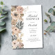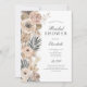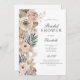 A beautiful blush pink grey beige boho floral botanical bridal shower invitation.