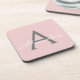 Blush Pink Grey Modern Script Girly Monogram Name Coaster