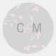 Add these gorgeous small round envelope sticker seals to your wedding thank you envelopes or any other item such as gifts or favours. Lovely modern yet elegant grey script calligraphy letters design. Branch and leaves in soft pink - grey background. Perfect for spring and summer weddings. You will surely impress everyone with these!