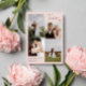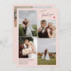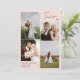 Blush pink wedding thank you card with a clean four photo collage and thank you in a neat signature script on one side with a cute coral red heart. On the other side, two more photos and a printed thank you message and your names.