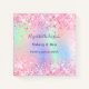 A trendy holographic background with unicorn colours and rainbow colours in pink, purple, mint green. Decorated with blush pink confetti. Personalize and add your name, title, text