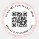 Elegant, round QR code label with circular text and a light blush pink marble border.
