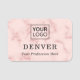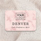 Elegant name tag with your first name, title and custom logo on a light blush pink marble background. You can change fonts, move and resize the logo and other elements with the design tool.