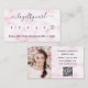Back: Personalize and add your photo, name, title, phone number, mail, website adsress, qr code to your website. Purple letters. Without glitter on the back.
