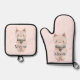 Blush Pink Meow Cat Oven Mitt & Pot Holder Set