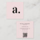 Blush Pink Minimalist Monogram Modern QR Code Square Business Card