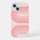 Blush Pink Mod Retro Striped Pattern Custom Name iPhone 15 Case