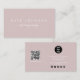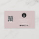 A beautiful design incorporating your business logo and your QR Code. This elegant blush pink modern script business card is ideal for all types of businesses. A simple and professional way to introduce your business. Social media icons included in the design of this business card for you to use. Personalize your details to create your own unique business card.