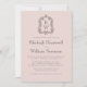 Blush Pink Monogram Crest QR Code Wedding Invitation