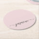 Blush Pink Monogram Name Script Chic Signature Round Paper Coaster