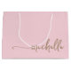 Blush Pink Monogram Name Script Gold Calligraphy Large Gift Bag