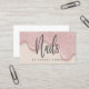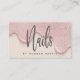 Elegant, trendy business card for nail technician featuring blush pink background and handwritten calligraphy script ''nails ' in grey colour. Personalize with a name on the front and details on the back.