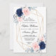 Blush Pink & Navy Blue Floral Wedding Invitation