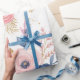 Add elegance to your gift-giving with this beautiful floral wrapping paper featuring blush pink and deep navy blue watercolor roses, paired with golden botanical accents. Set against a crisp white background, this sophisticated design is perfect for weddings, birthdays, bridal showers, baby showers, or any special occasion. A stylish and modern choice for anyone who loves floral prints and luxury paper goods.