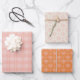 A set of three unique coordinating geometric wrapping papers in light palette of blush pink, off white and orange, faded with a slight texture and abstract floral theme. Beautiful for wedding or engagement gift, bachelorette gift, or anytime.