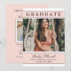 Celebrate your graduate with this modern blush pink photo graduation party invitation featuring a clean “GRADUATE” headline and an elegant framed photo layout. Personalize the graduate name, school, class year, and party details for a polished, easy-to-read design. The coordinating back includes a matching framed photo and the party details for a cohesive set. A soft, timeless colorway that’s perfect for spring and summer graduation celebrations.