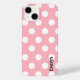 Add style to your day with this chic and pretty phone case. In elegant blush pink, patterned with white polka dots, the case can be personalized with your name or other text.
