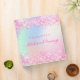 A trendy holographic, iridescent background with unicorn colours and rainbow colours in pink, purple, rose gold, mint green. Decorated with faux glitter dust in pink. Personalize and add your name, and a text. Perfect for a home office, school homework, back to school. The text on front is written with a modern hand lettered style script with swashes. To keep the swashes only delete the sample name, leave the spaces or emoji's in front and after the name.