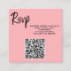 Simplify your wedding planning with this Blush Pink QR Code RSVP Card, designed for modern couples who value both style and convenience. Featuring a soft blush pink background and elegant typography, this card blends romantic charm with a sleek, minimalist layout. The integrated QR code allows guests to quickly and easily respond online—no stamps or mail needed—making the RSVP process seamless and efficient. Ideal for contemporary weddings, this card adds a tech-savvy touch to your stationery suite while maintaining a warm, personalized feel. Perfect for digital-savvy guests and beautifully coordinated with blush-themed wedding decor.