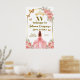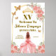 Letrero Cartel rosa con dorado para Quinceañera. Elegante letrero de Bienvenida para quince años. Cartel elegante acrilico para quinceanera.