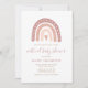 Celebrate the soon to be mommy’s baby shower via live streaming or video call with this cute and whimsical invitation featuring shades of blush pink rainbow and a monochromatic blush pink stripes on the back. Personalize it with your baby shower event details.