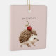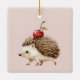 Blush Pink Red Cherry Adorable Hedgehog Ceramic Ornament